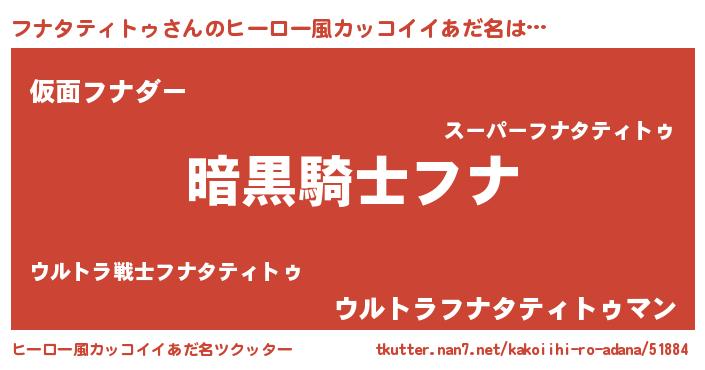 | 男性向けラノベタイトル風あだ名 | 『緋弾のフナタティトゥ』 |