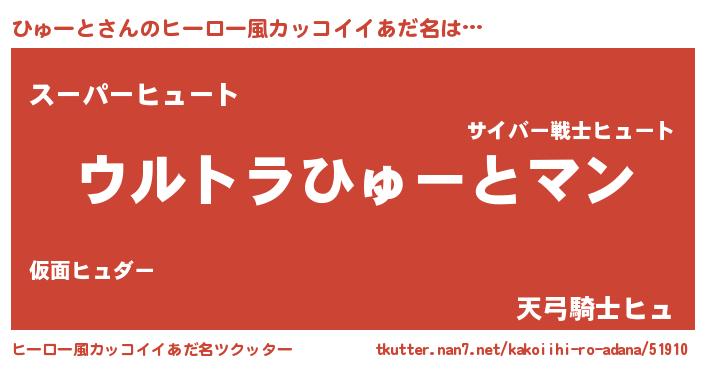 ひゅーとさんのヒーロー風カッコイイあだ名をツクッター!
