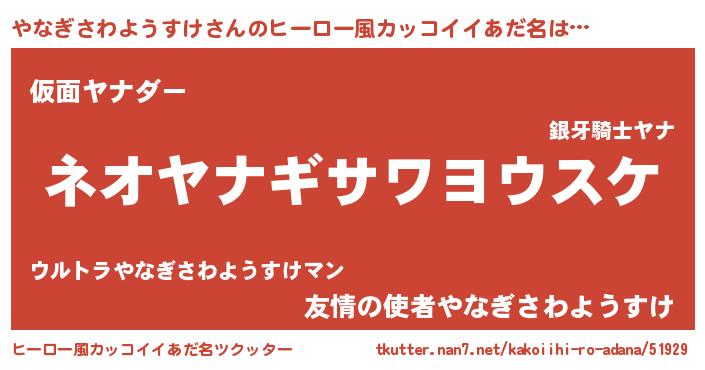 | 男性向けラノベタイトル風あだ名 | 『やなぎさわようすけに滅ぼされるだけの簡単なお仕事です』 |
