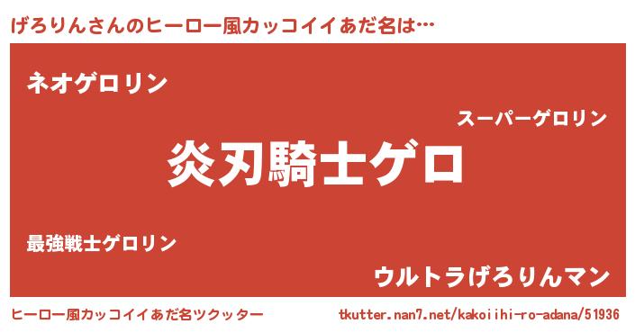 げろりんさんのヒーロー風カッコイイあだ名をツクッター!
