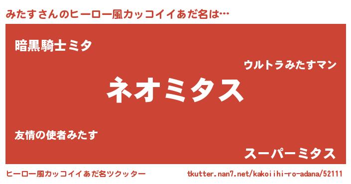 | 男性向けラノベタイトル風あだ名 | 『ミタススレイヤー』『みたすの憂鬱』 |