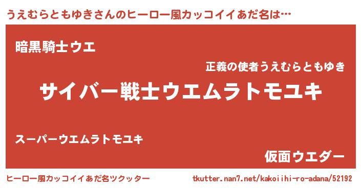 | 意味不明あだ名 | 『自称うえむらともゆき』 |