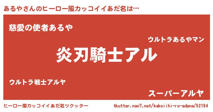 | 女子向けラノベタイトル風あだ名 | 『あるや様がみてる』『死神あるやの再婚』 |
