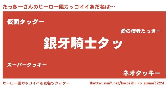 | 男性向けラノベタイトル風あだ名 | 『たっきーの嫁は女の子じゃないと思った?』 |