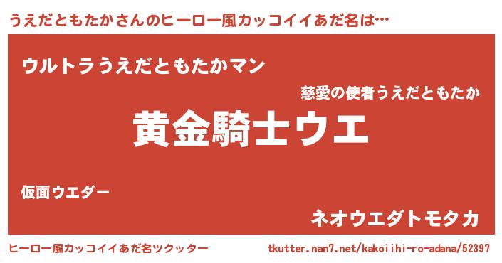 | 男性向けラノベタイトル風あだ名 | 『緋弾のウエダトモタカ』 |