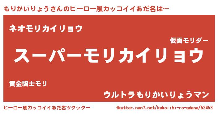 | 男性向けラノベタイトル風あだ名 | 『もりかいりょうの憂鬱』 |