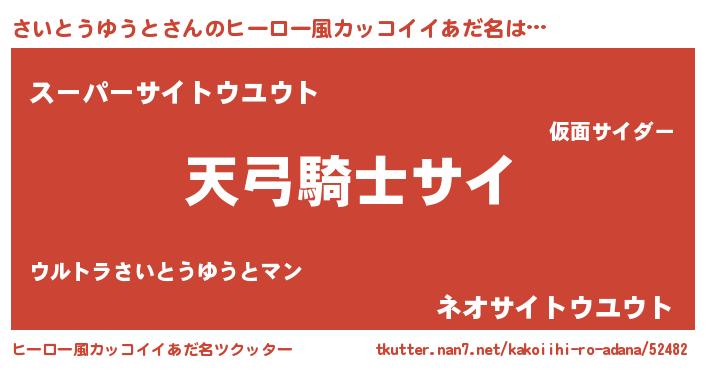 | 男性向けラノベタイトル風あだ名 | 『さいとうゆうとの嫁は女の子じゃないと思った?』 |