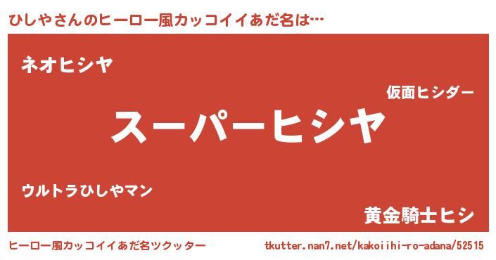 | 男性向けラノベタイトル風あだ名 | 『ヒシヤスレイヤー』『ひしやの憂鬱』 |