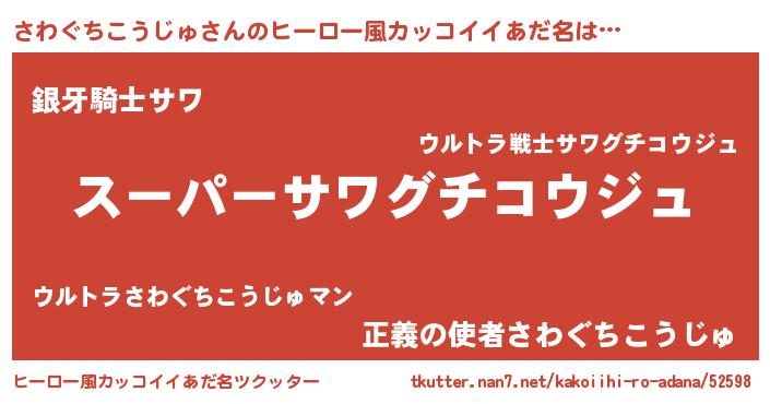 | 男性向けラノベタイトル風あだ名 | 『転生したらさわぐちこうじゅだった件』 |