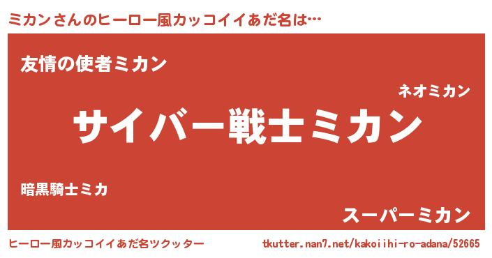 | 女子向けラノベタイトル風あだ名 | 『闇のミカン』『ミカン夫妻のなれそめ』 |