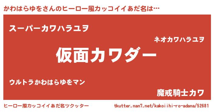 | 胡散臭い通販商品みたいなあだ名 | 『あなたにだけ特別に提供する世界で10本だけ現存している希少なブランデー…その名も「かわはらゆを」』 |