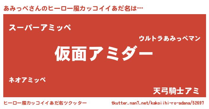 | 男性向けラノベタイトル風あだ名 | 『この素晴らしい世界にあみっぺを!』 |