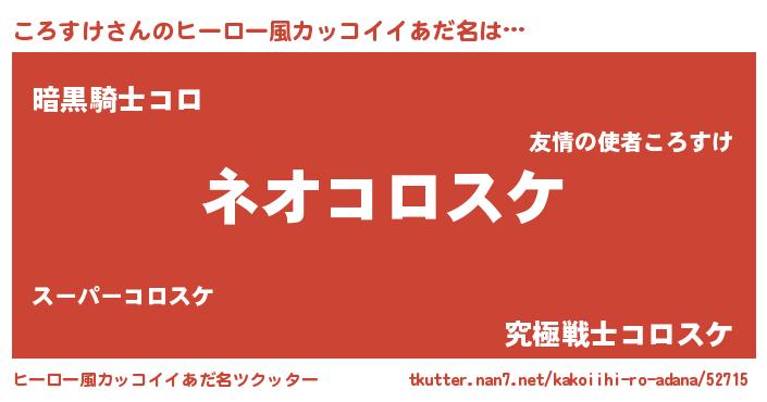 | 男性向けラノベタイトル風あだ名 | 『ころすけという概念が存在しない退屈な世界 』 |