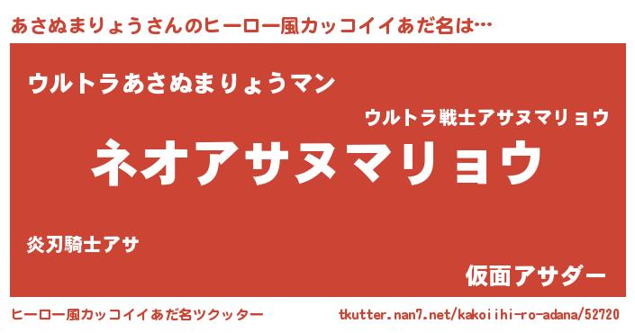 | 意味不明あだ名 | 『永久保存あさぬまりょう』 |