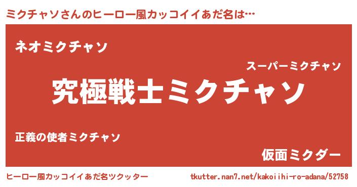 | 意味不明あだ名 | 『自称ミクチャソ』『永久保存ミクチャソ』 |