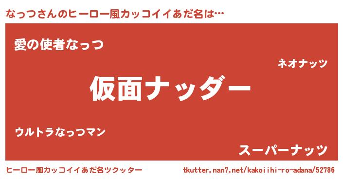 | 男性向けラノベタイトル風あだ名 | 『この素晴らしい世界になっつを!』 |
