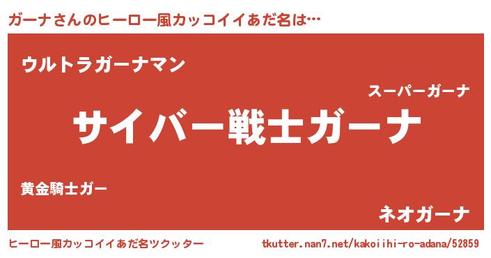| ヘコむあだ名 | 『なまこ酢』『ガーナ(笑)』『ガーを』 |