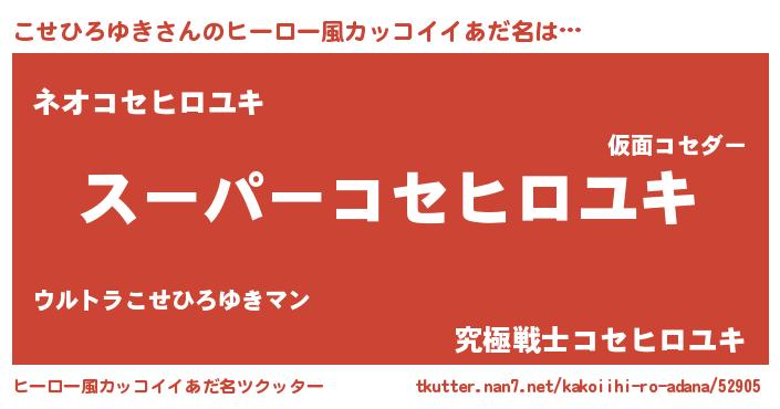 | 肩書あだ名 | 『こせひろゆき中将』『こせひろゆき社長』 |