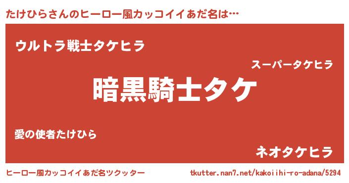 | 男性向けラノベタイトル風あだ名 | 『タケヒラスレイヤー』 |