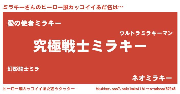 | ヘコむあだ名 | 『ミラキー(小並感)』『豆乳』 |