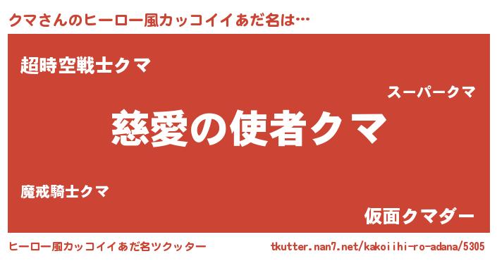 | 男性向けラノベタイトル風あだ名 | 『ノーゲーム・ノークマ』 |