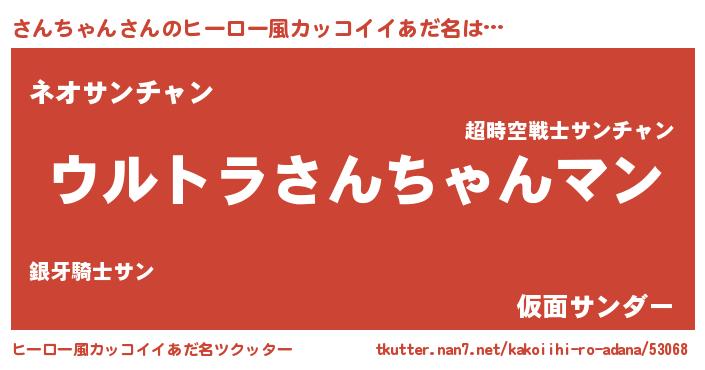 | 女子向けラノベタイトル風あだ名 | 『さんちゃんの玉の輿計画!』 |