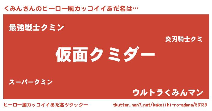 | 男性向けラノベタイトル風あだ名 | 『この素晴らしい世界にくみんを!』 |