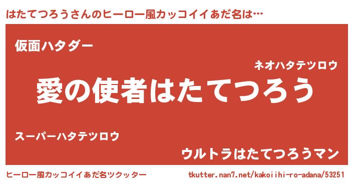 | 女子向けラノベタイトル風あだ名 | 『はたてつろうの玉の輿計画!』 |