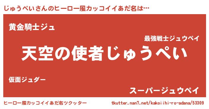 | 女子向けラノベタイトル風あだ名 | 『死神じゅうぺいの再婚』 |