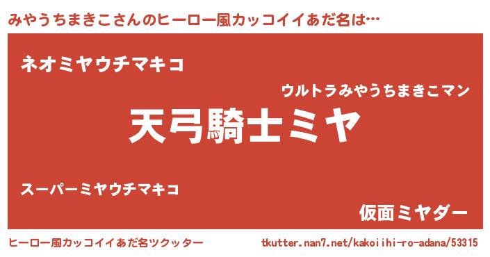 | 男性向けラノベタイトル風あだ名 | 『みやうちまきこの嫁は女の子じゃないと思った?』 |