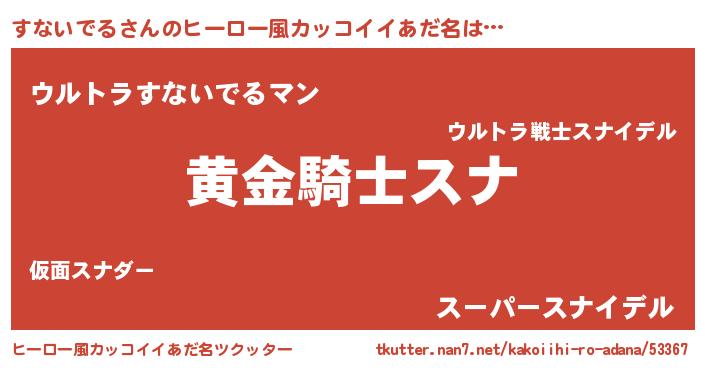 | 男性向けラノベタイトル風あだ名 | 『緋弾のスナイデル』『すないでるの憂鬱』 |