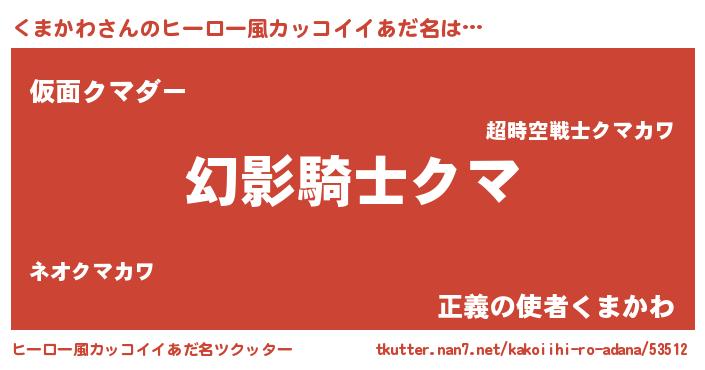 | ヘコむあだ名 | 『くまぷりん』『くまかわ(震え声)』 |