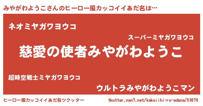 | ヘコむあだ名 | 『みやがわようこ(笑)』『牛乳』 |