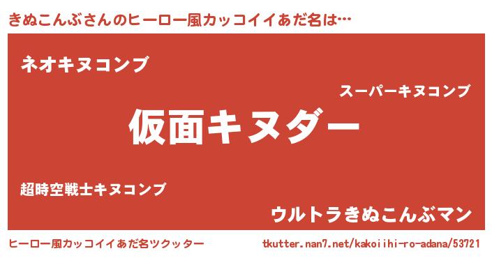 | 男性向けラノベタイトル風あだ名 | 『魔弾の王ときぬこんぶ』 |