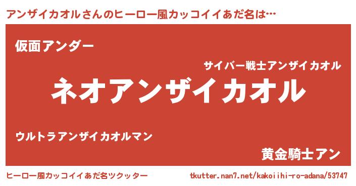 | ヘコむあだ名 | 『アンザイカオル(爆)』『アンっ子』 |