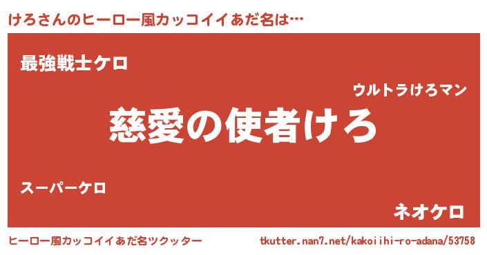 | 女子向けラノベタイトル風あだ名 | 『死神けろの再婚』『けろ伯爵の花嫁』 |