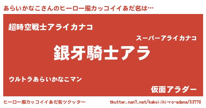 | ポケモン風あだ名 | 『ヒアライカナコ』『アラセウス』 |