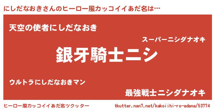 | ポケモン風あだ名 | 『ヒニシダナオキ』『ニックウザ』 |