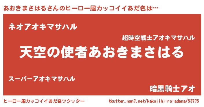 | 男性向けラノベタイトル風あだ名 | 『あおきまさはる~年齢イコール彼女いない歴の魔法使い~』 |