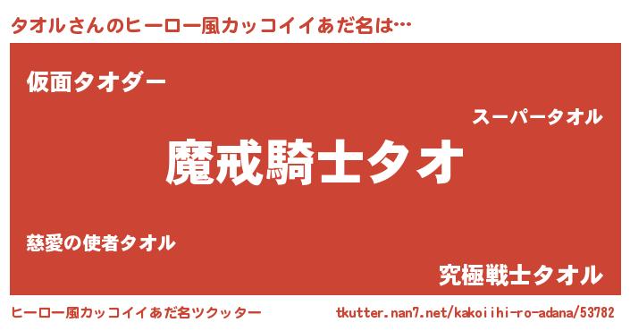 | 女子向けラノベタイトル風あだ名 | 『タオルの卵を拾いまして』 |