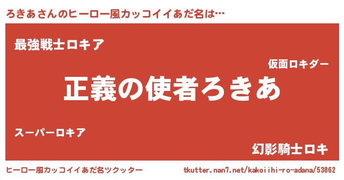 | 女子向けラノベタイトル風あだ名 | 『ろきあ夫妻のなれそめ』『闇のろきあ』 |