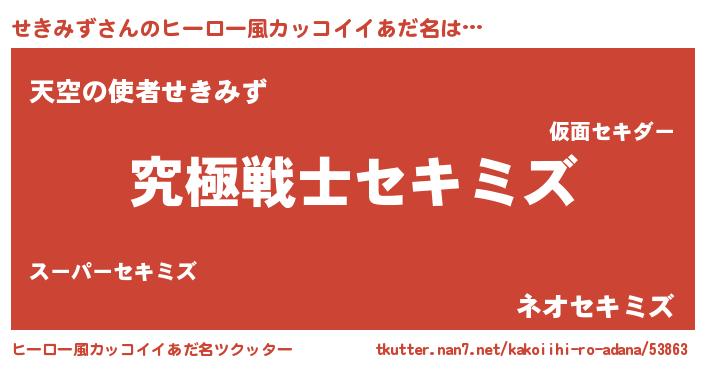 | 男性向けラノベタイトル風あだ名 | 『せきみず~年齢イコール彼女いない歴の魔法使い~』 |