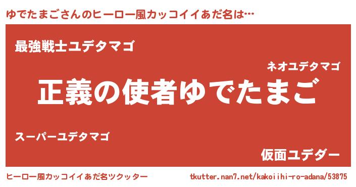 | 男性向けラノベタイトル風あだ名 | 『ユデタマゴスレイヤー』 |