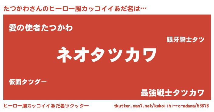 | 意味不明あだ名 | 『永久保存たつかわ』『自称たつかわ』 |