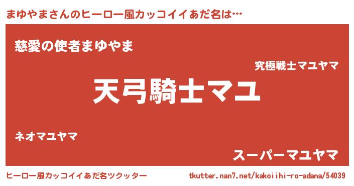 | 男性向けラノベタイトル風あだ名 | 『まゆやま~年齢イコール彼女いない歴の魔法使い~』 |