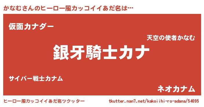 | 男性向けラノベタイトル風あだ名 | 『かなむの嫁は女の子じゃないと思った?』 |