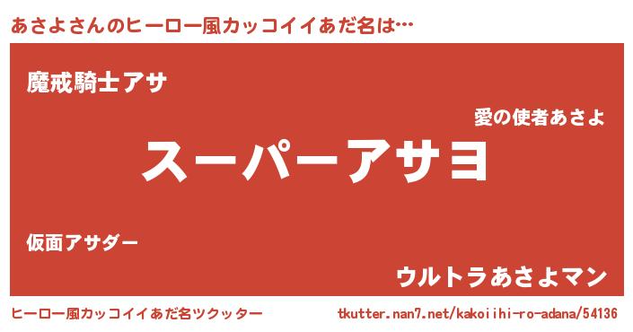 | ポケモン風あだ名 | 『アサチュウ』『ヒアサヨ』 |