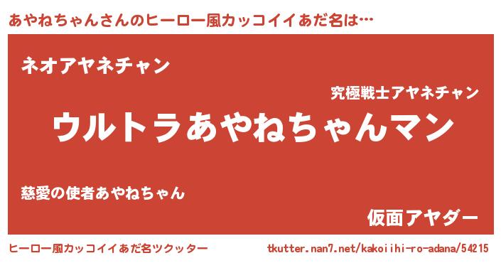 | ファンタジー風あだ名 | 『エターナルアヤネチャンー』 |