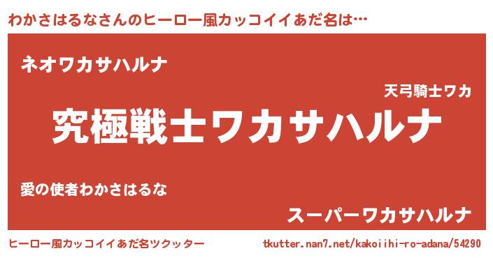 | 男性向けラノベタイトル風あだ名 | 『Re:わかさはるなから始める異世界生活』 |