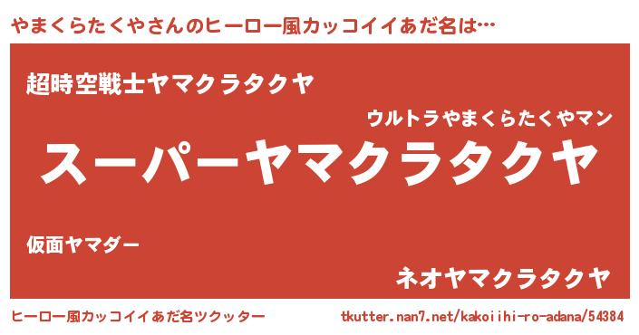 | 胡散臭い通販商品みたいなあだ名 | 『必ず成功するブレスレット…その名も「やまくらたくや」』 |